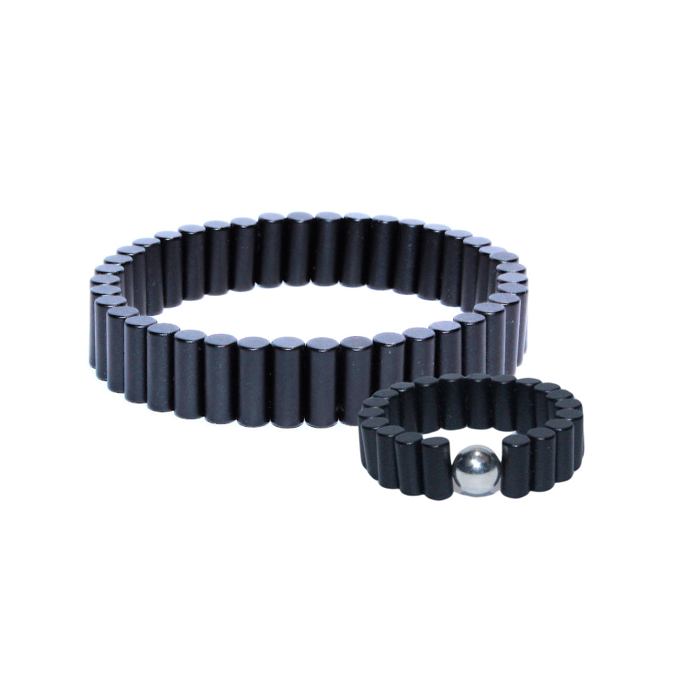 Pack Black Intense : Bague & Bracelet en cylindres d'aimant - Noir
